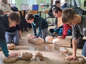 16 października - to nie przypadkowa data - dziś obchodzimy Europejski Dzień Przywracania Czynności Serca. Dzisiejsza próba bicia Rekordu jest zatem świetną okazją do wspólnej nauki resuscytacji. Uczniowie klas 6,8 ćwiczyli RKO na fantomach.