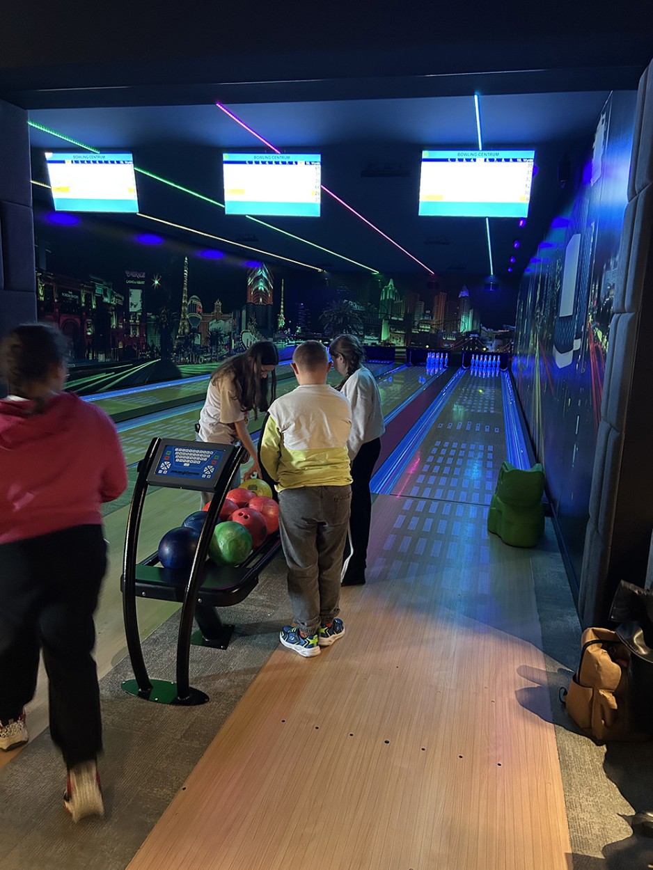 Po wizycie w kinie uczniowie udali się na kręgielnię, gdzie spędzili czas w aktywny i radosny sposób. Podczas gry w kręgle mieli okazję nie tylko dobrze się bawić, ale także uczyć zasad zdrowej rywalizacji, współpracy i wzajemnego szacunku.