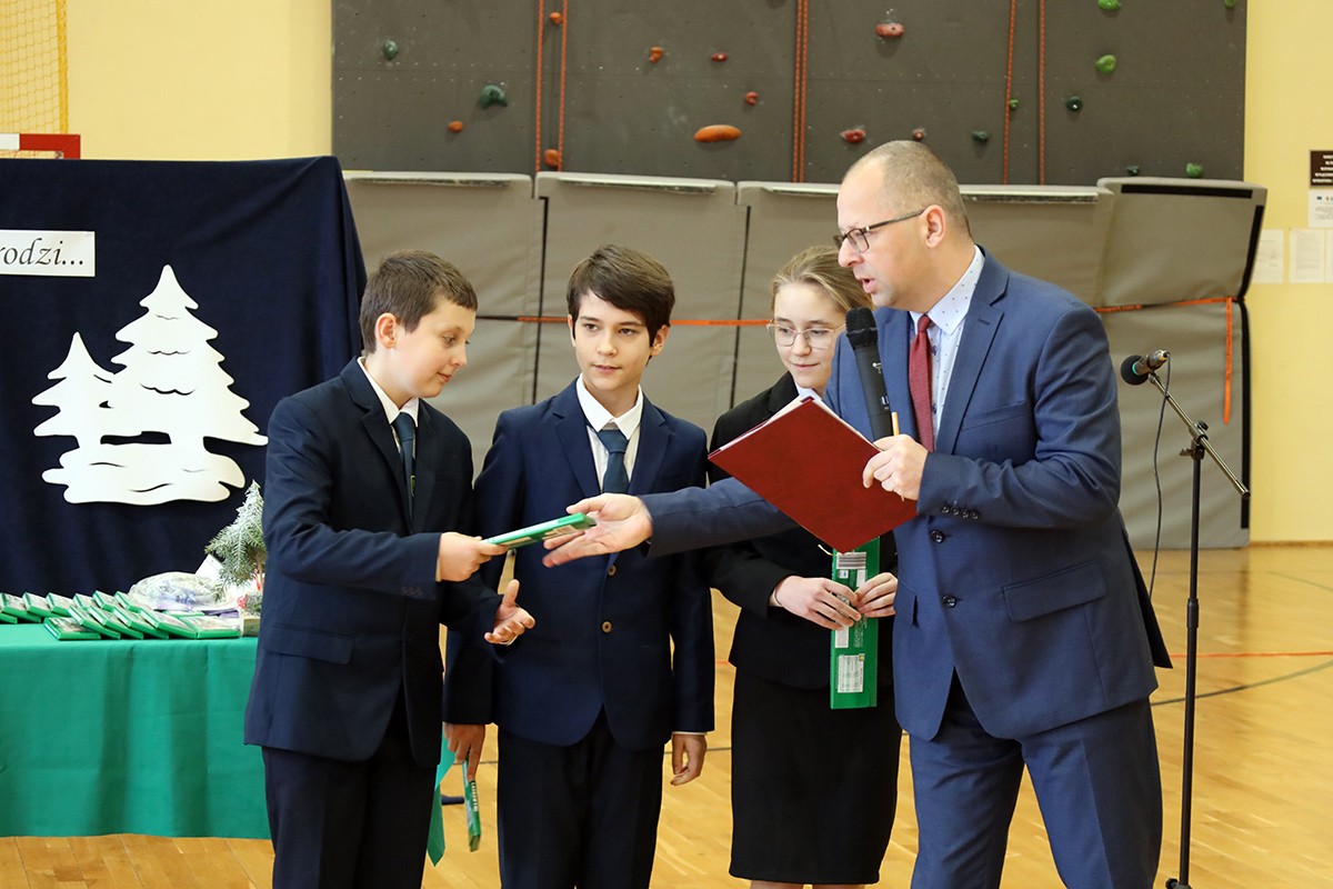 W piątek 22 grudnia 2023 r. w naszej szkole odbył się uroczysty Apel Bożonarodzeniowy. Występujący uczniowie wprowadzili nas w nastrój świąteczny, co przejawiło się wspólnym śpiewaniem kolęd. Zebranym na uroczystości uczniom, życzenia świąteczne i noworoczne złożył Dyrektor szkoły – p. Krzysztof Koper.