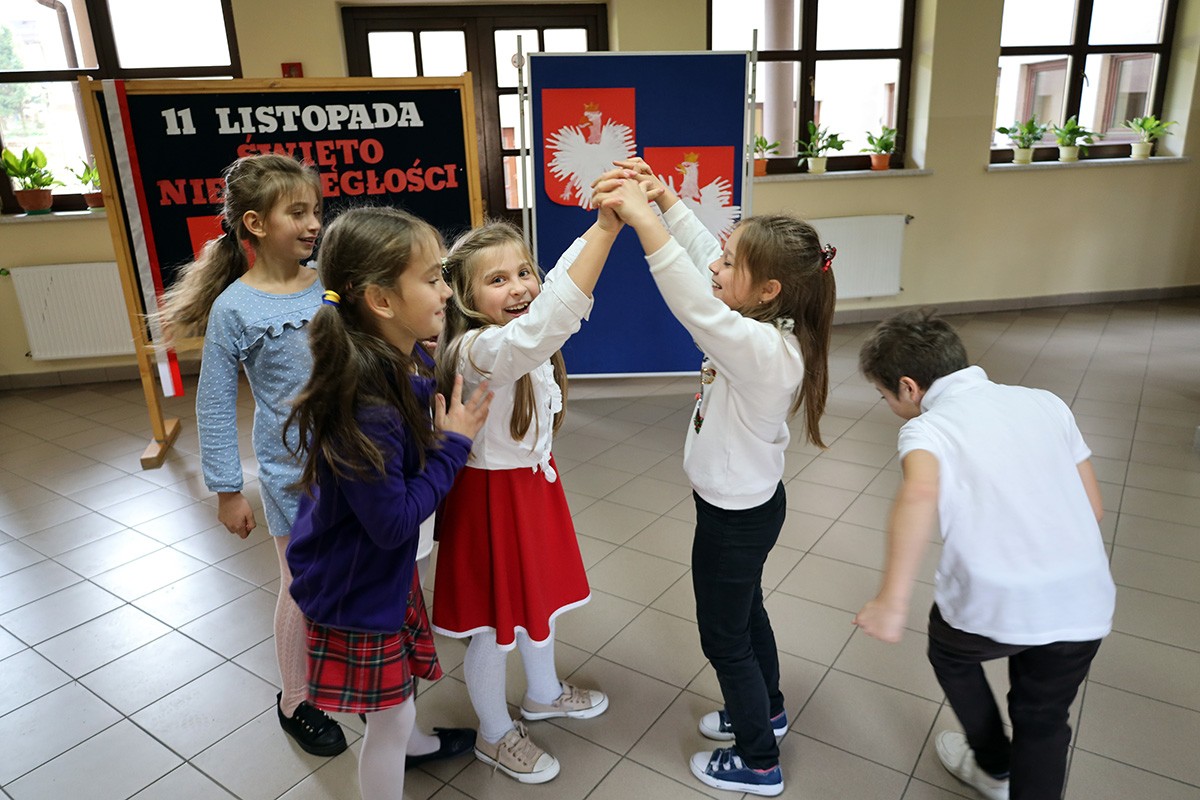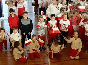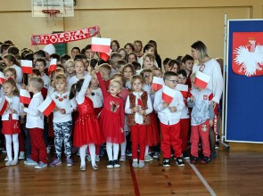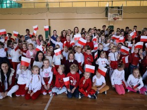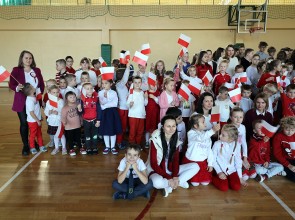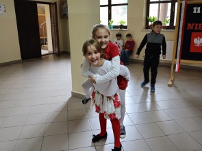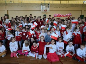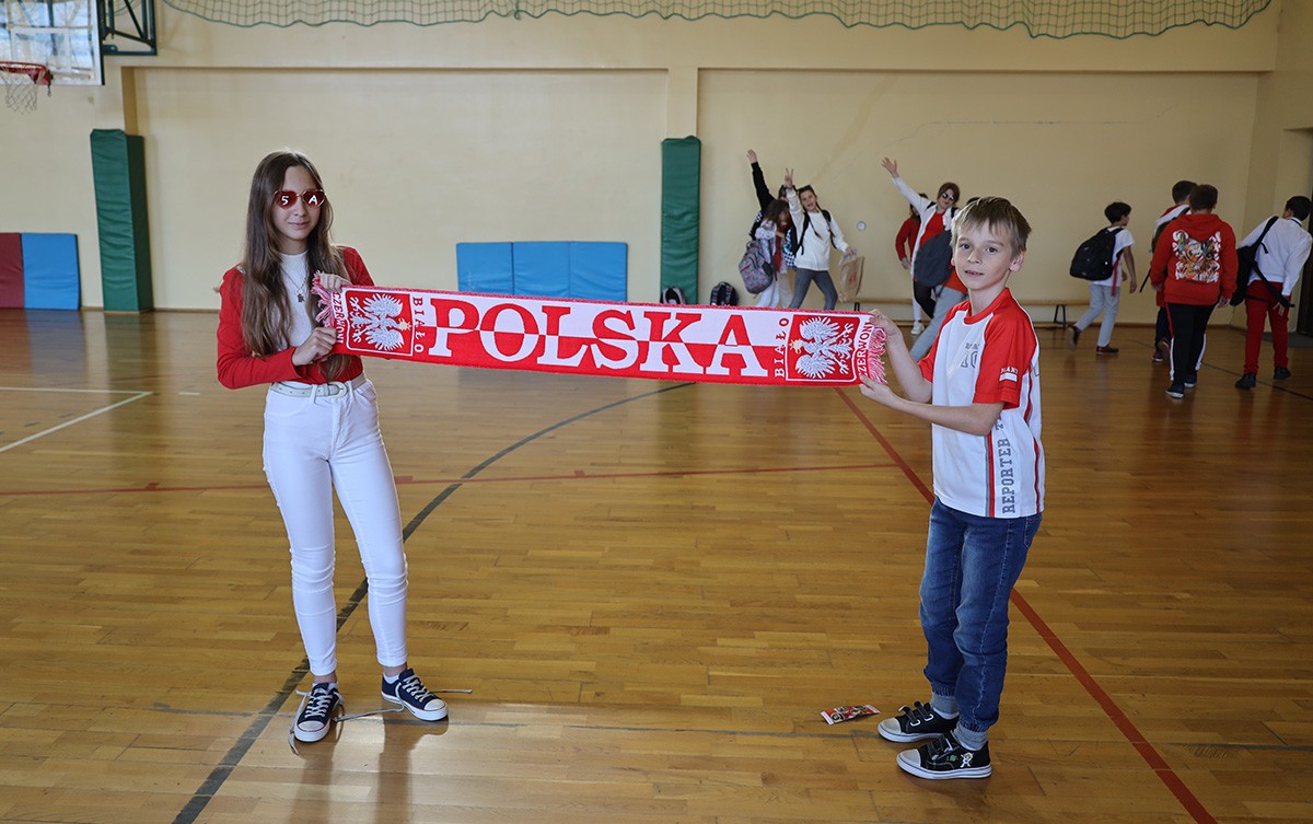 Przed Świętem Narodowym, w środę 9 listopada, wszyscy poczuli radosnego ducha patriotyzmu i tego dnia przywdziali strój w barwach narodowych. Nasze szkolne korytarze zamieniły się w biało-czerwoną rzekę.