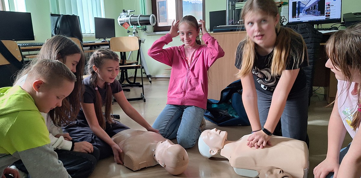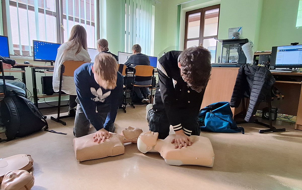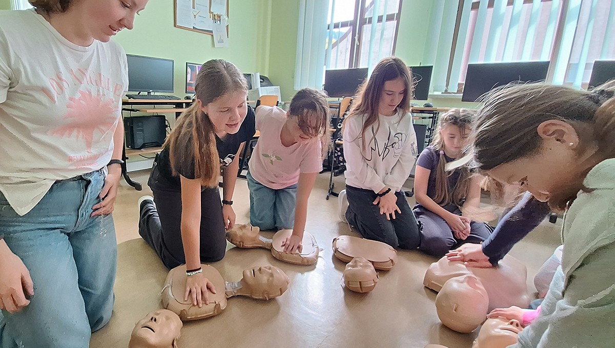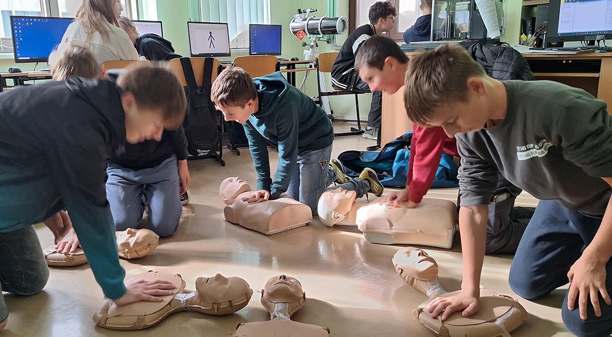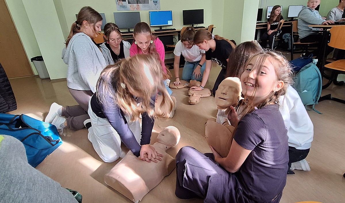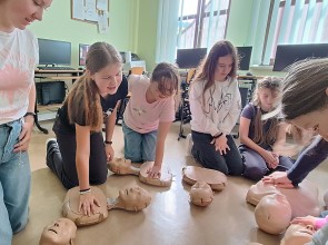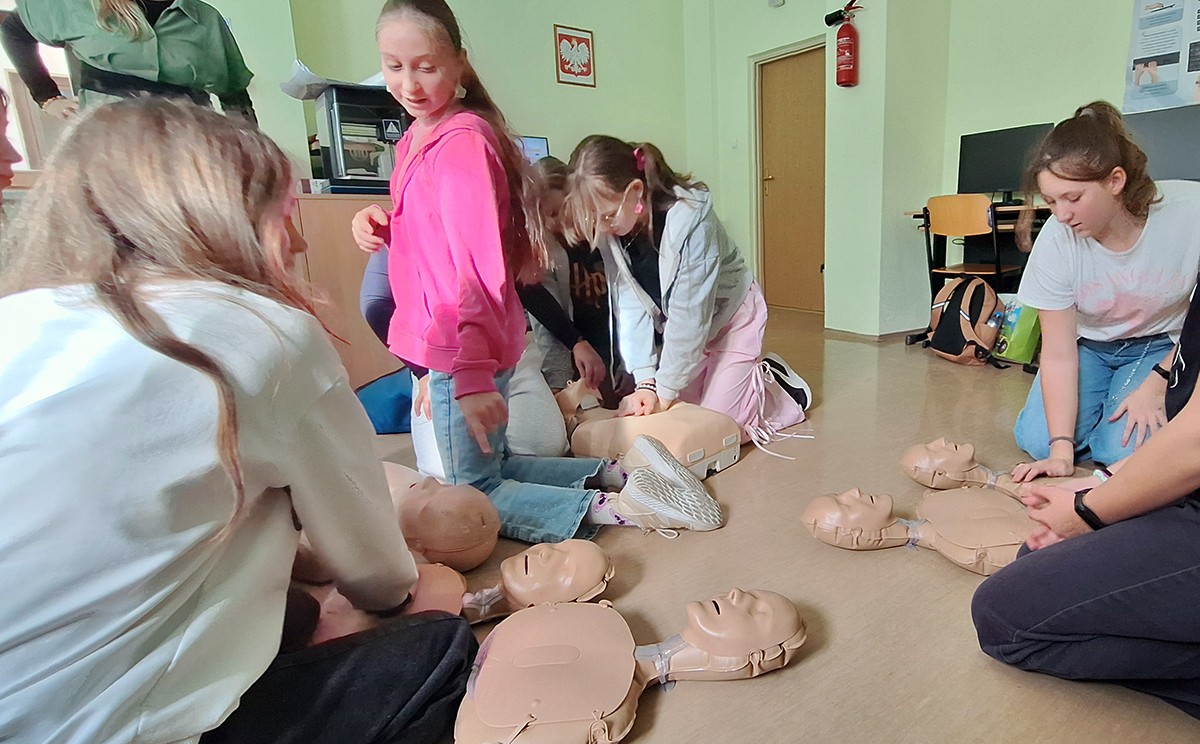 16 października - to nie przypadkowa data - dziś obchodzimy Europejski Dzień Przywracania Czynności Serca. Dzisiejsza próba bicia Rekordu jest zatem świetną okazją do wspólnej nauki resuscytacji. Uczniowie klas 6,8 ćwiczyli RKO na fantomach.