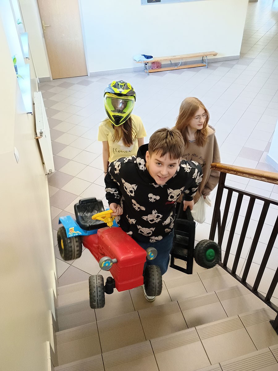 Po raz kolejny Samorząd Uczniowski zorganizował w szkole z okazji Dnia Wiosny - ,,Dzień bez plecaka" 🎒. Uczniowie jak zwykle wykazali się wielką kreatywnością i swoje podręczniki oraz piórniki nie spakowali do plecaków, ale różnych ciekawych przedmiotów np. wózka sklepowego, walizki, kosza, samochodziku, przyczepki itp.