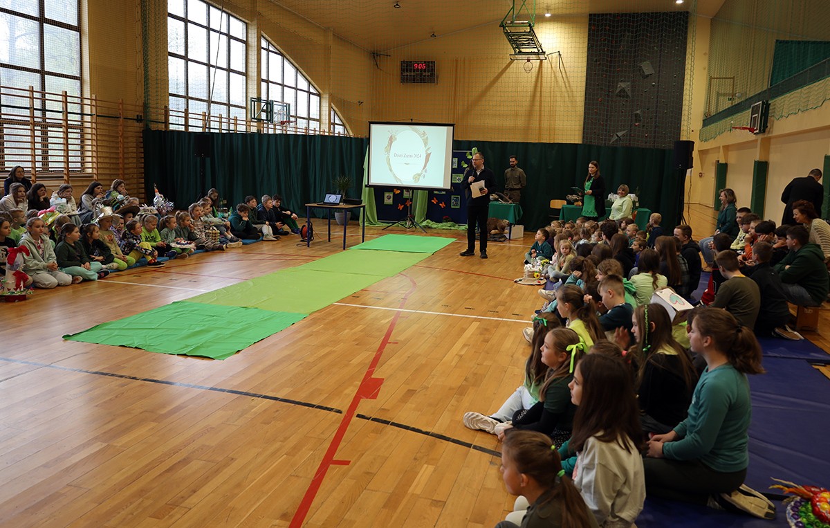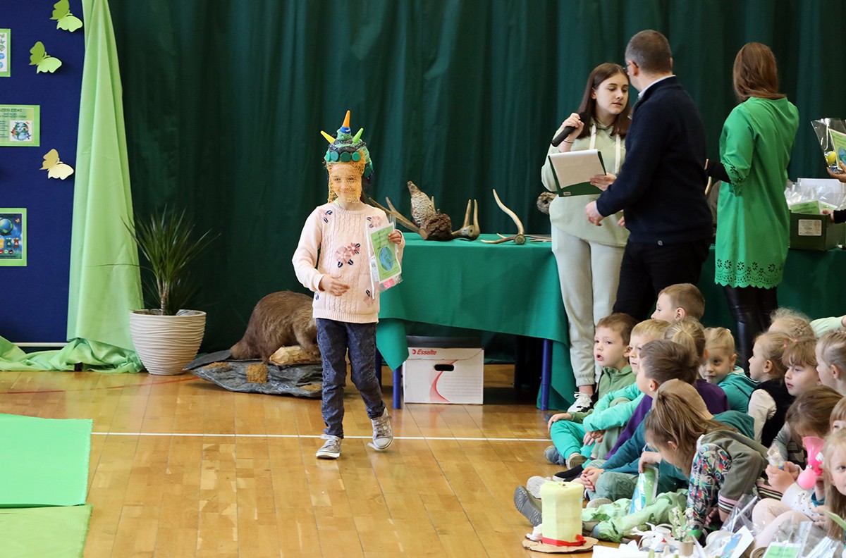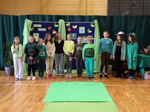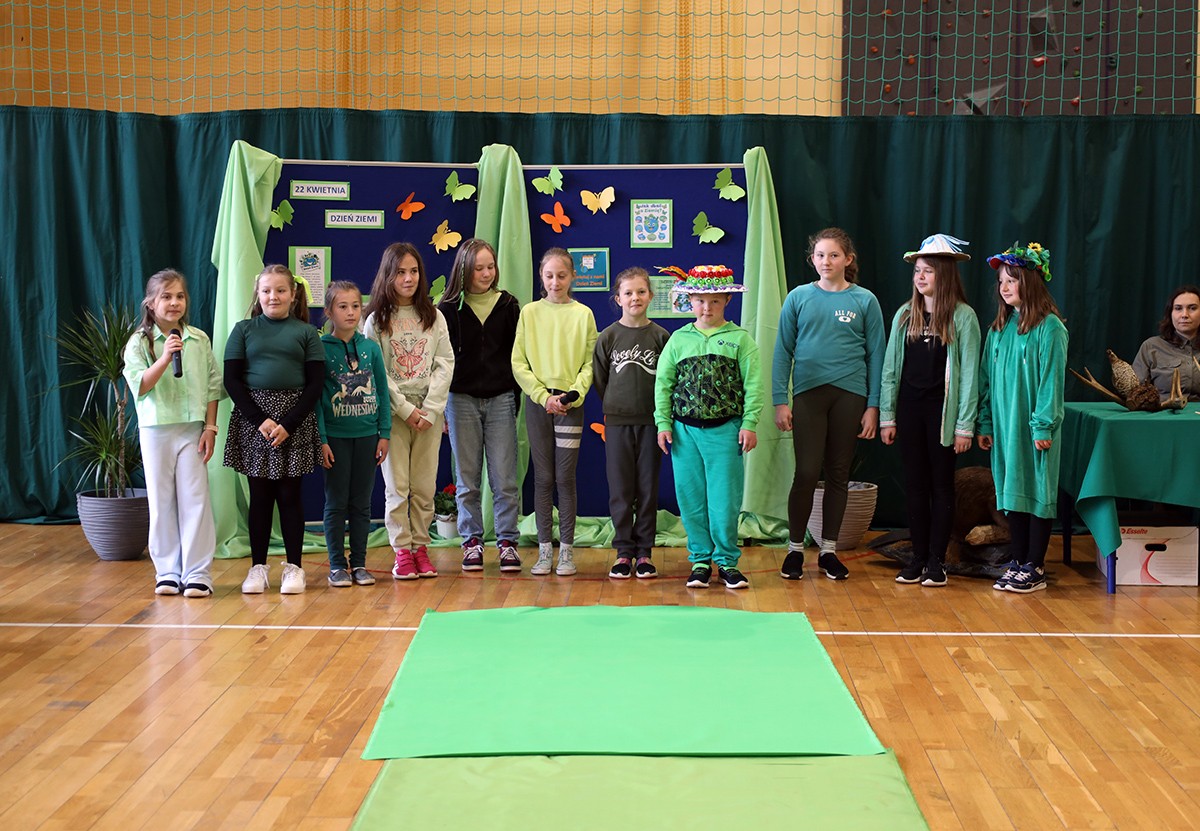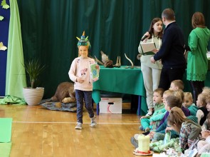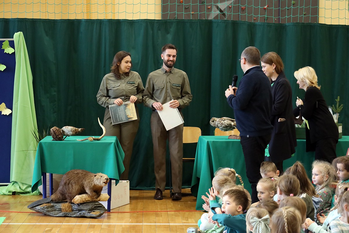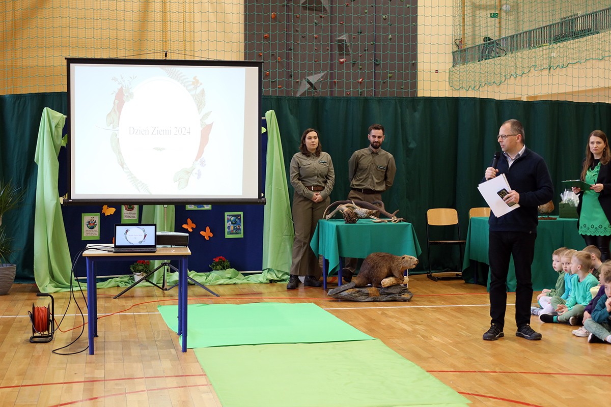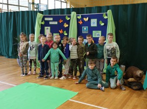 Tego dnia wszyscy uczniowie i podopieczni przedszkola przyszli do szkoły ubrani na zielono. Świętowanie rozpoczęło się spotkaniem z przyrodnikami z Nadleśnictwa Krościenko.