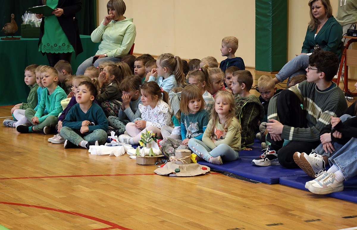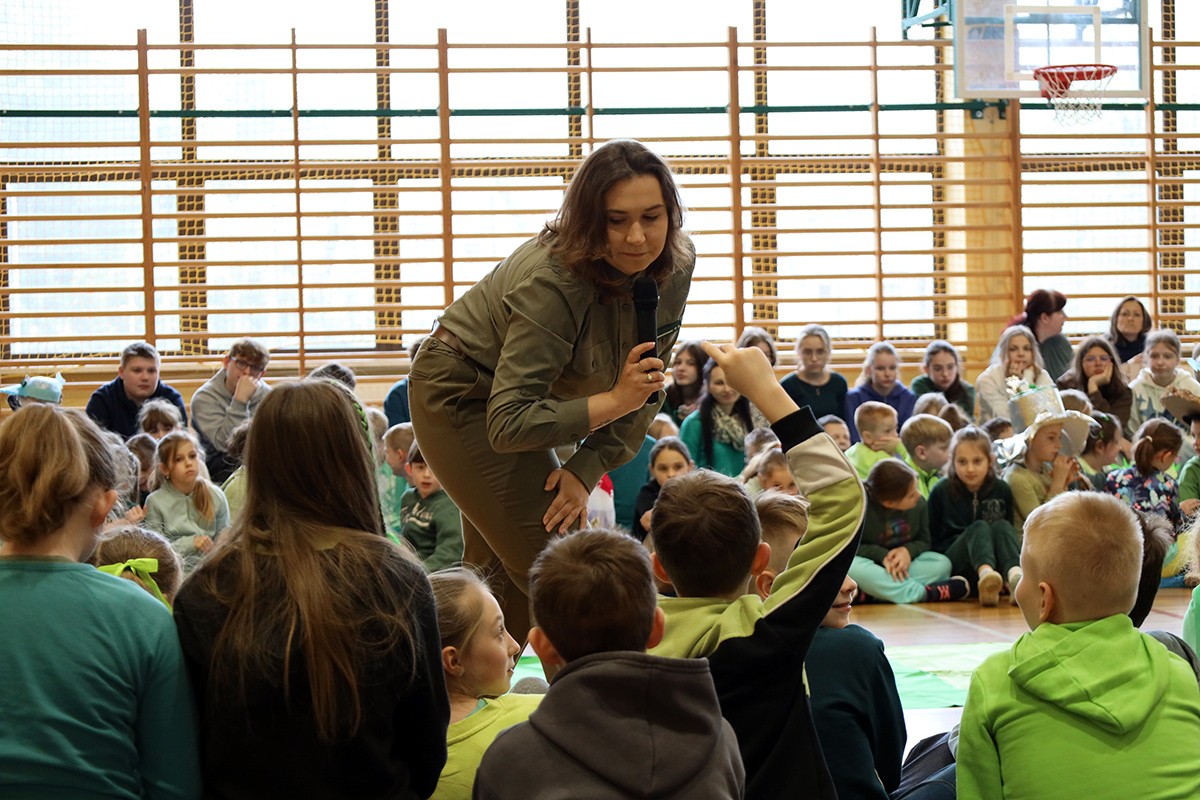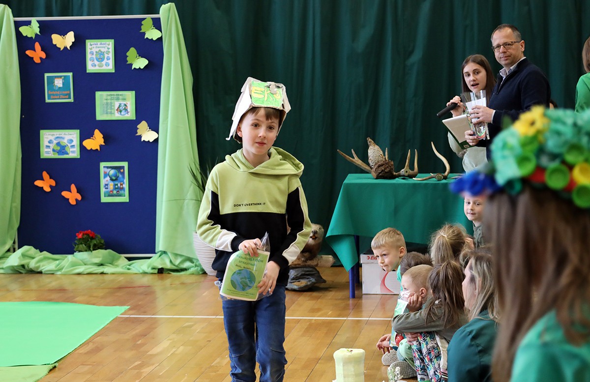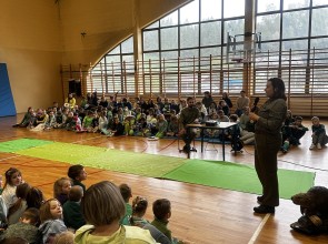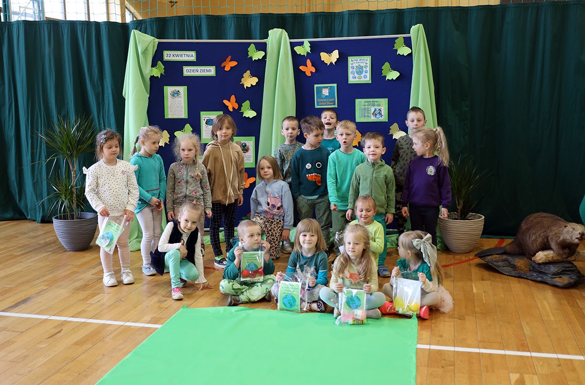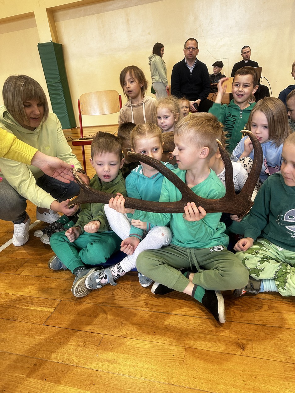 Tego dnia wszyscy uczniowie i podopieczni przedszkola przyszli do szkoły ubrani na zielono. Świętowanie rozpoczęło się spotkaniem z przyrodnikami z Nadleśnictwa Krościenko.