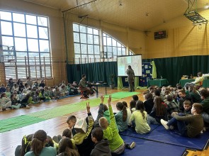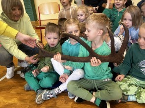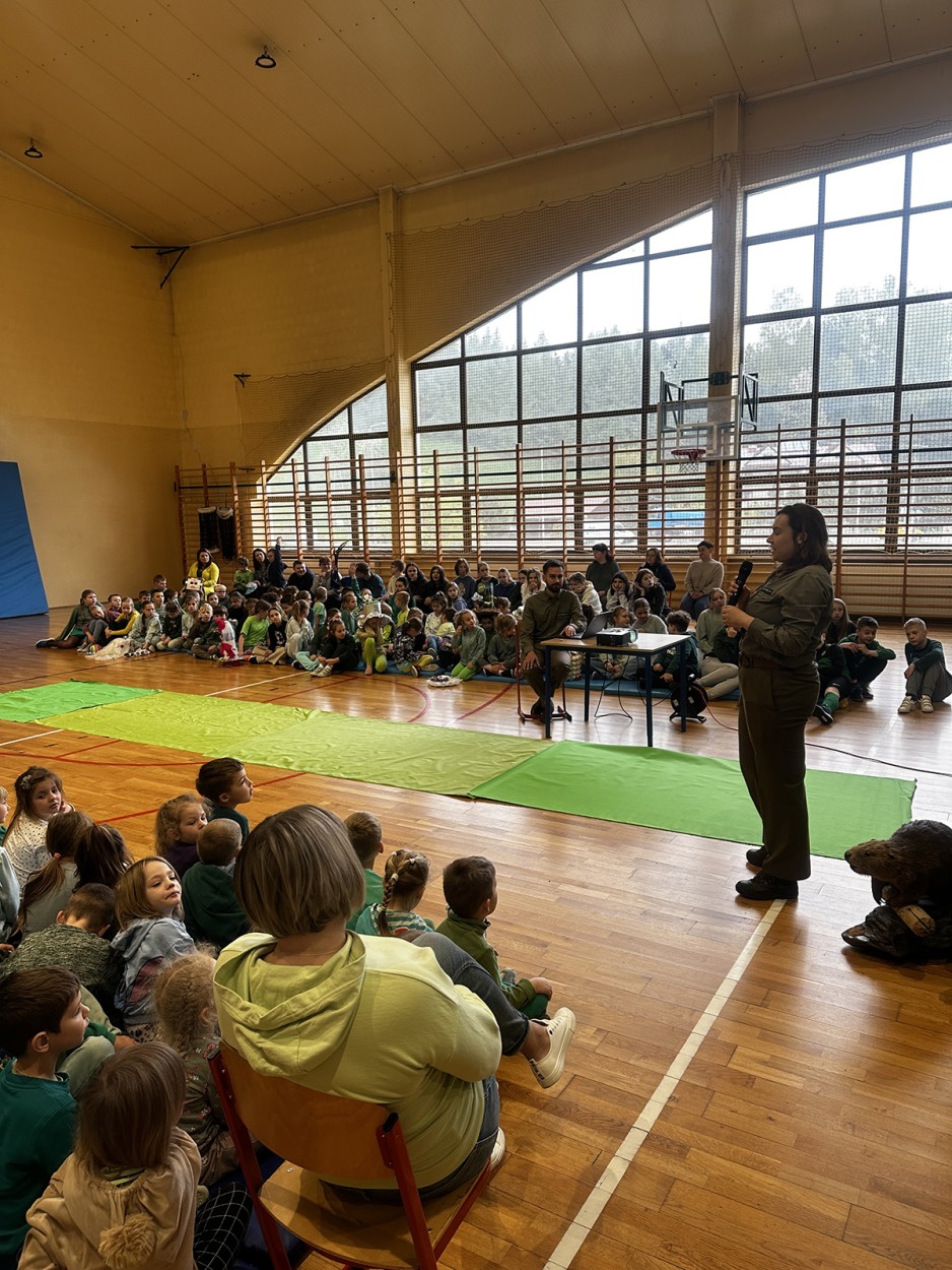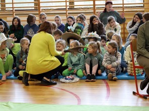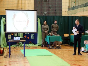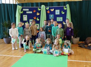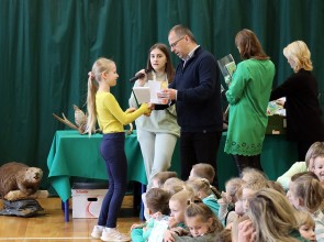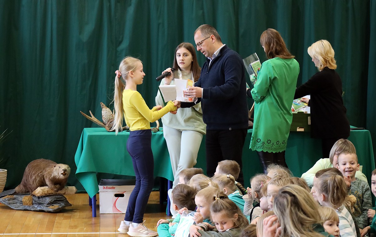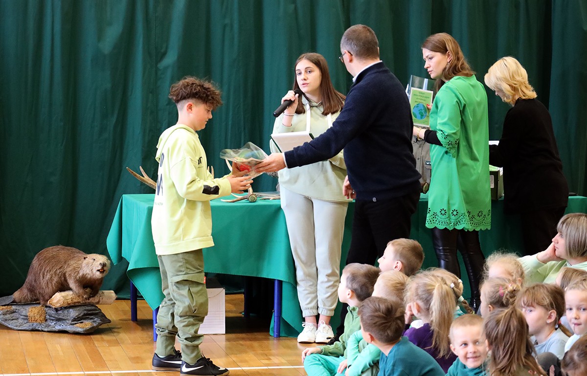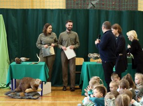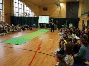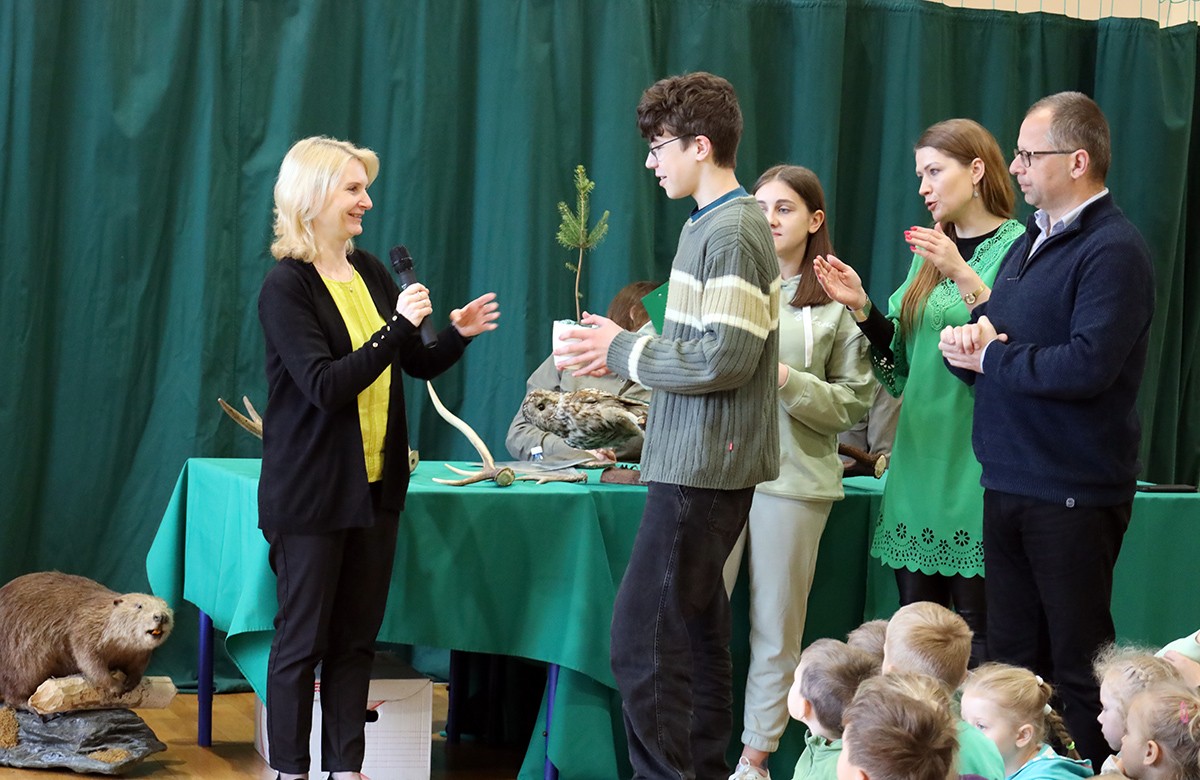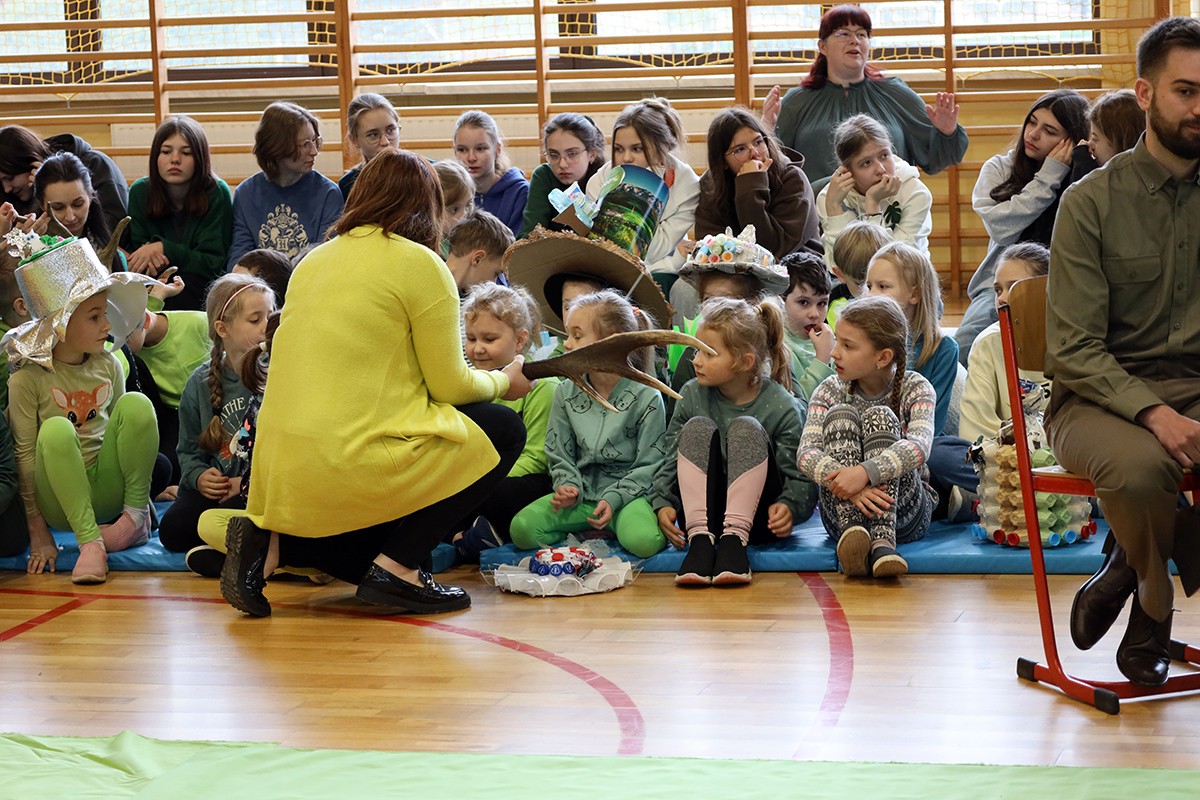 Tego dnia wszyscy uczniowie i podopieczni przedszkola przyszli do szkoły ubrani na zielono. Świętowanie rozpoczęło się spotkaniem z przyrodnikami z Nadleśnictwa Krościenko.