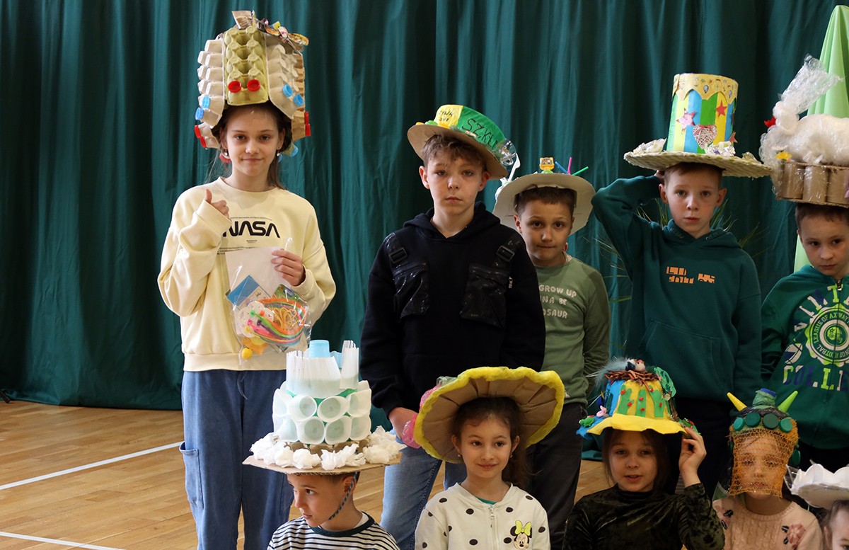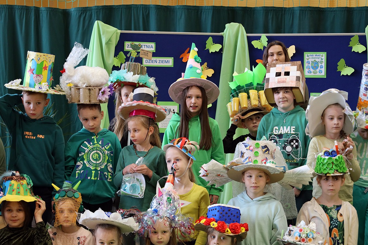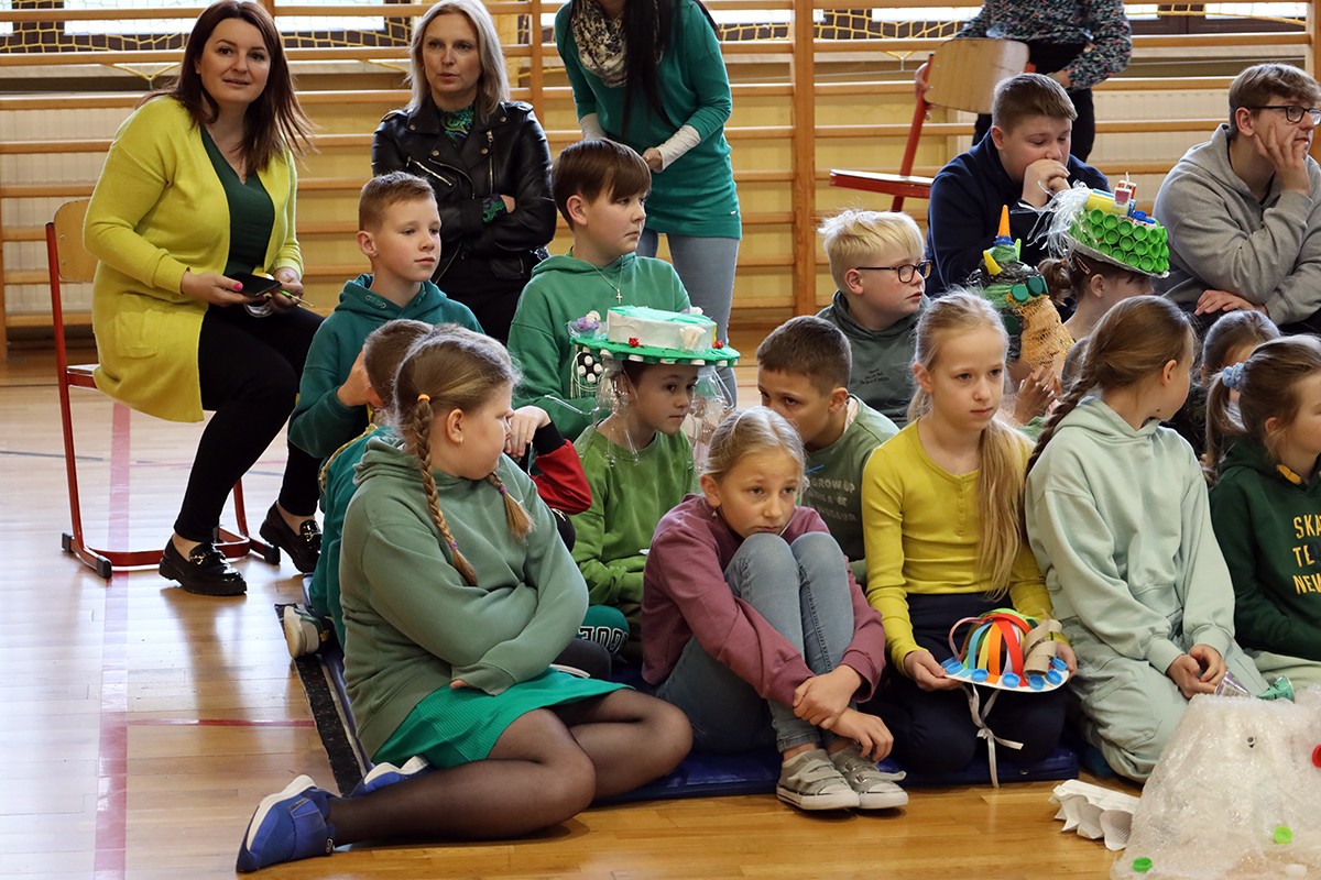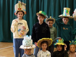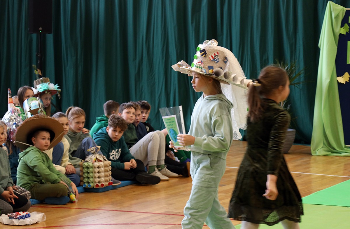 Kolejnym punktem wspólnego spotkania był występ klasy IV oraz pokaz mody „Kapelusz z recyklingu”.