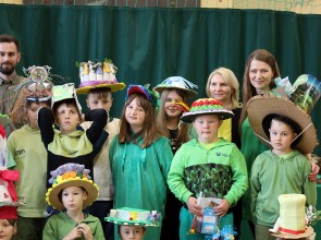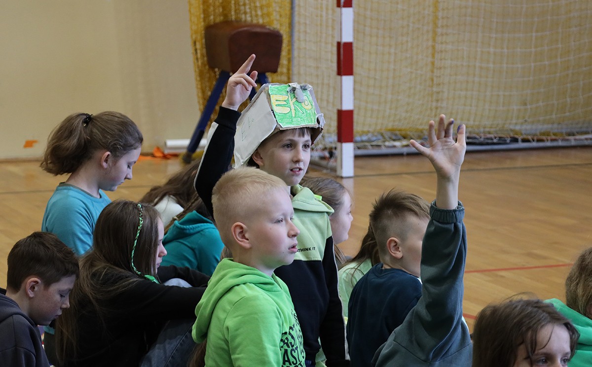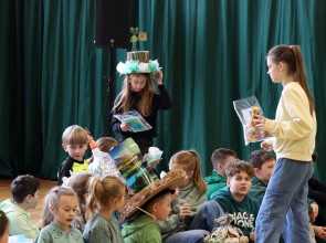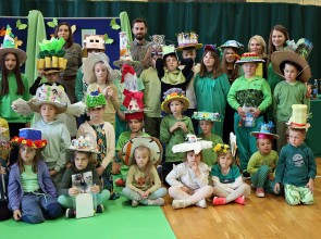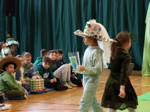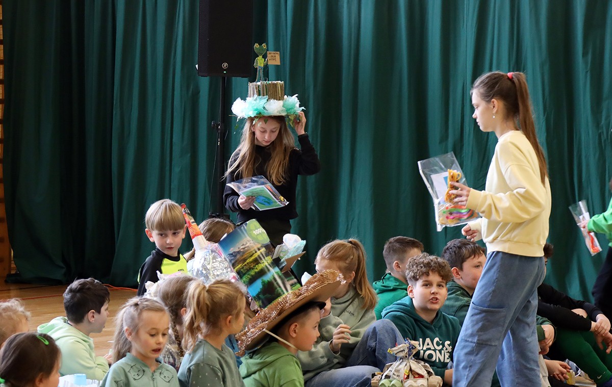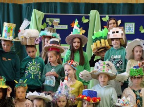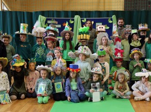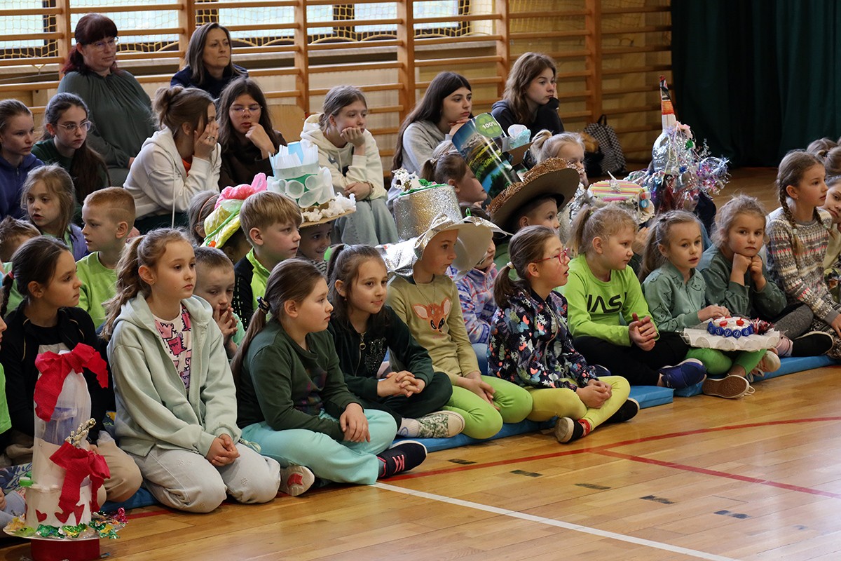 Kolejnym punktem wspólnego spotkania był występ klasy IV oraz pokaz mody „Kapelusz z recyklingu”.
