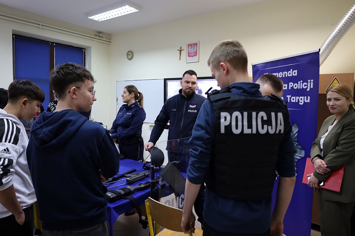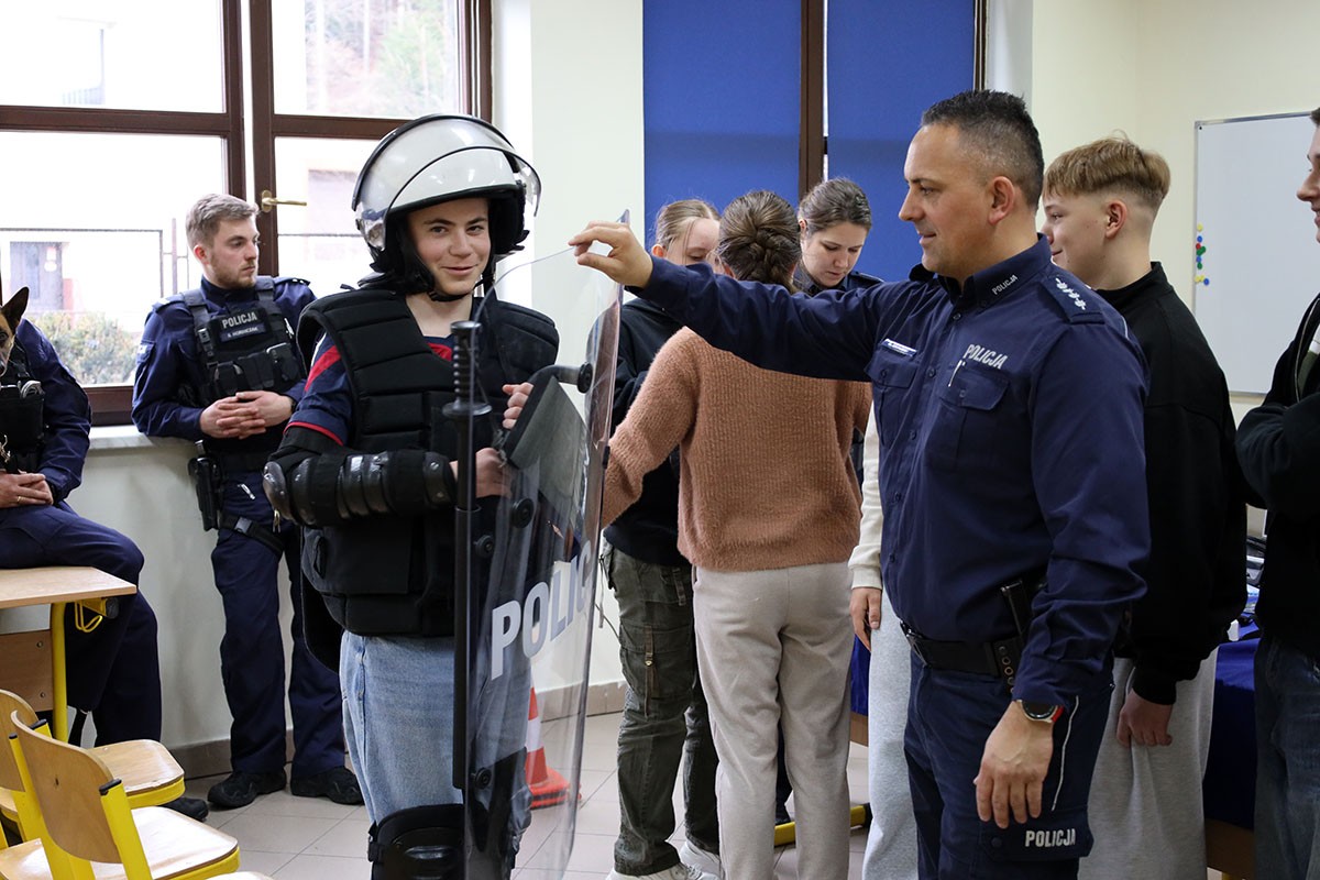 Młodzież miała okazję zapoznać się ze specyfiką pracy mundurowej, obejrzeć specjalistyczny sprzęt, porozmawiać indywidualnie na temat wymogów rekrutacyjnych jakie trzeba przejść, by trafić w szeregi służb.