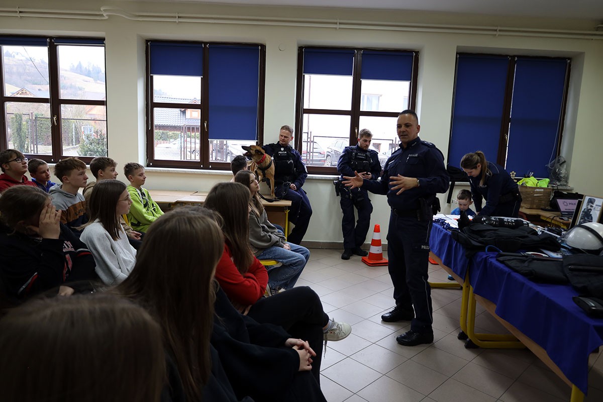 Dzisiaj w naszej szkole odbyło się spotkanie młodzieży- uczniów klas 7. i 8. z wszystkich szkół Gminy Krościenko nad Dunajcem z przedstawicielami służb mundurowych.