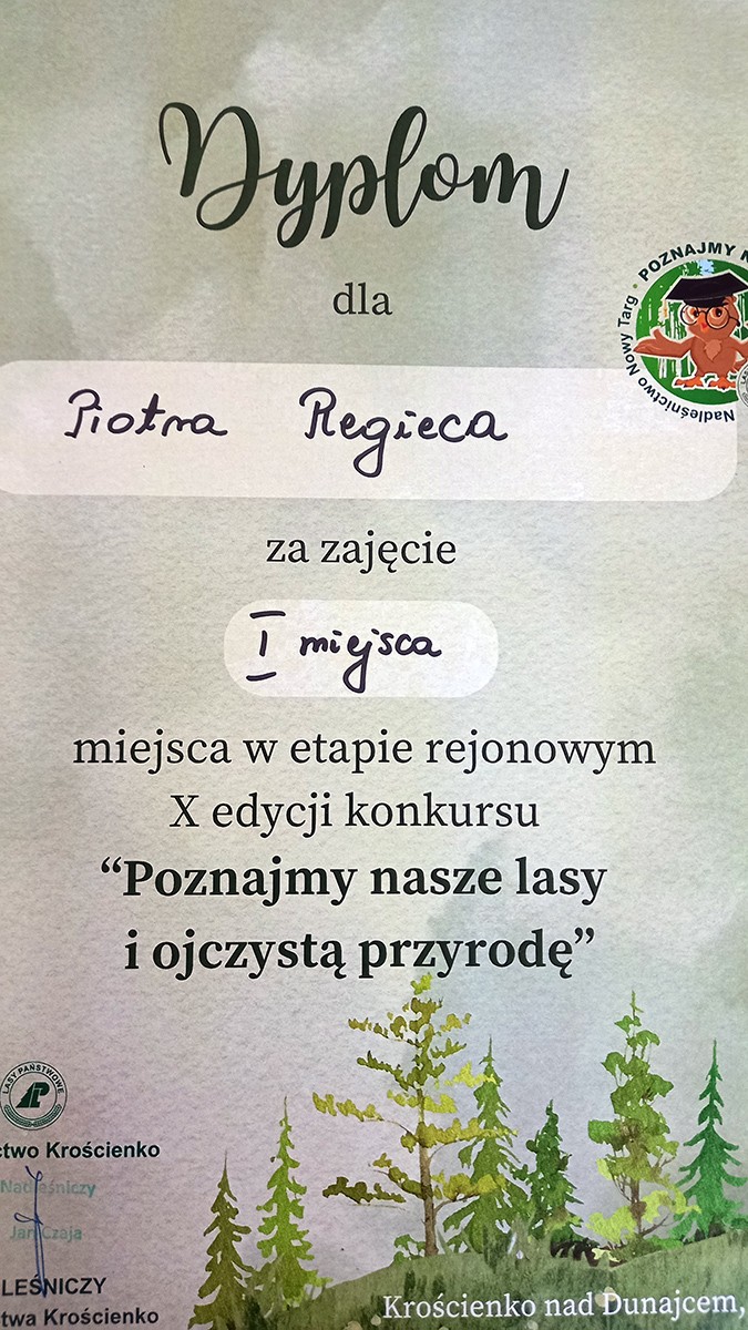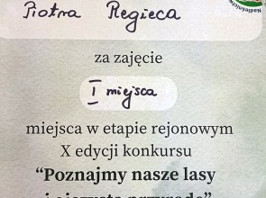 Naszą szkołę reprezentowali: Joanna Olszewska, Filip Błażusiak i Piotr Regiec. Uczniowie wykazali się dużą wiedzą, ale spośród wszystkich uczestników najlepszy wynik uzyskał Piotr Regiec i tym samym zajął I miejsce.