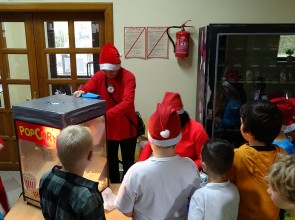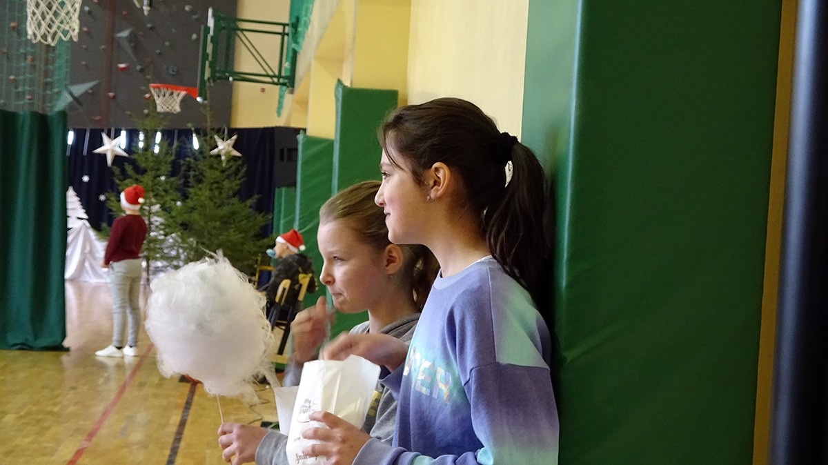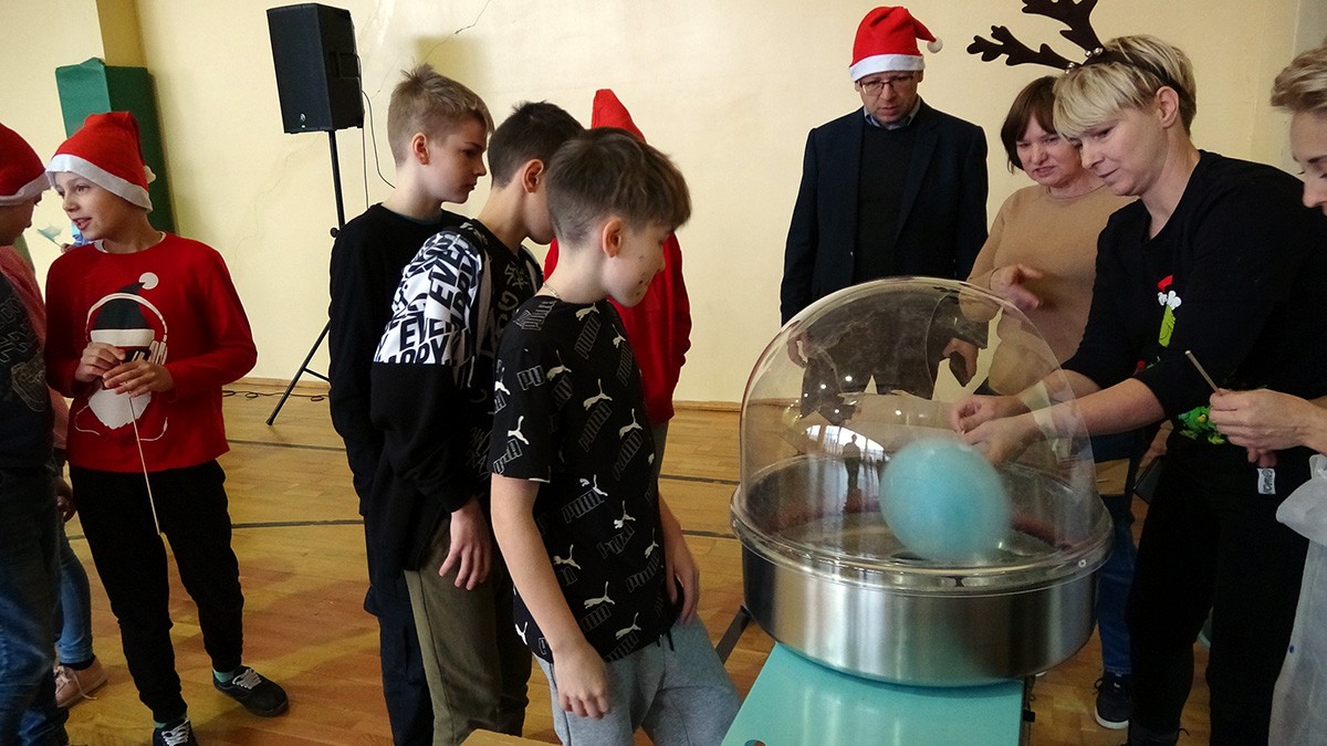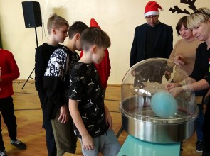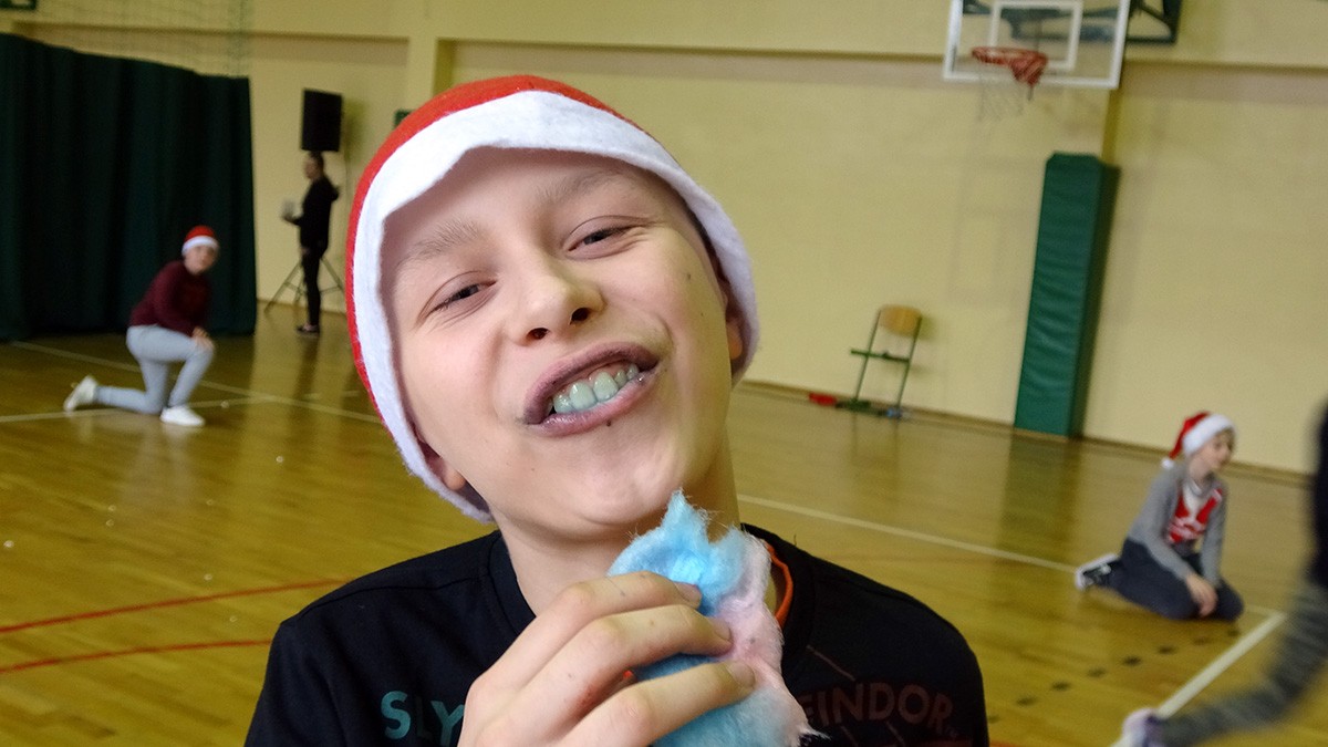 6 grudnia Rodzice zaprosili do szkoły wyjątkowego gościa. Św. Mikołaj przyniósł wspaniały prezent - maszynę do robienia waty cukrowej! W tym dniu uczniowie tworzyli ozdoby świąteczne, zajadali popcorn oraz oczywiście kolorową watę cukrową. W tym szczególnym dniu odbyły się również rozgrywki sportowe - uczniowie kontra nauczyciele. Dziękujemy RODZICOM i Mikołajowi za niezapomniany dzień.