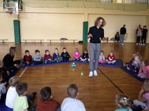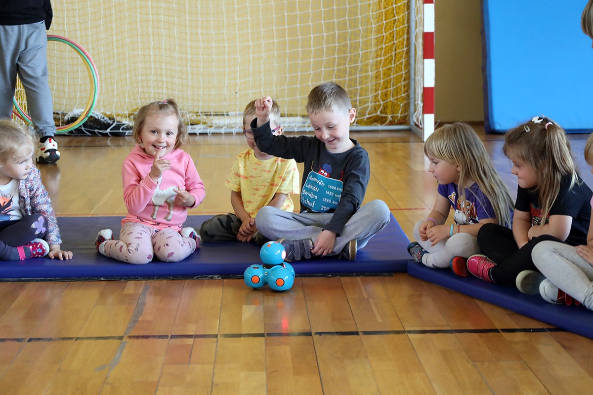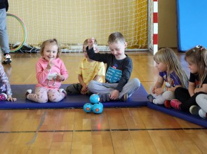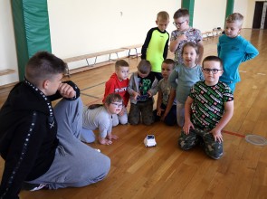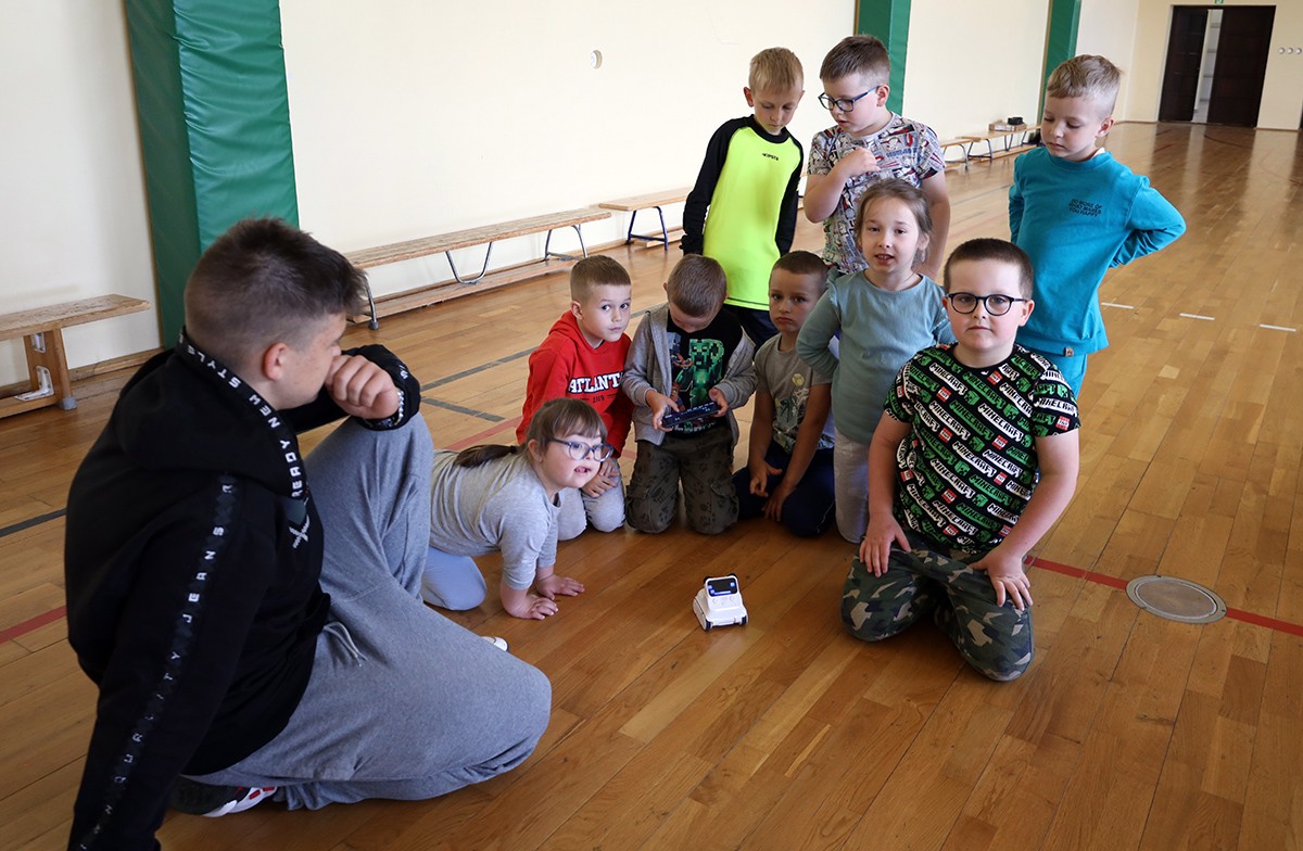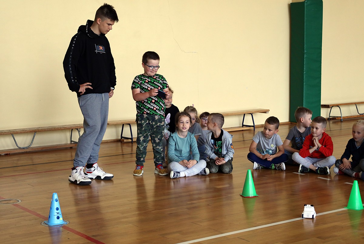 15 czerwca uczniowie klasy 8 wraz z nauczycielem informatyki przygotowali pokaz robotów i dronów dla dzieci z przedszkola oraz zerówki.