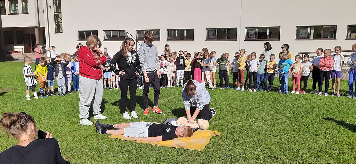 Dodatkowo dzieci i młodzież została przeszkolona z zakresu udzielania pierwszej pomocy - reanimacja, omdlenie.