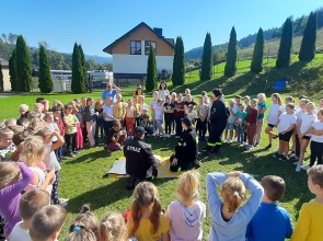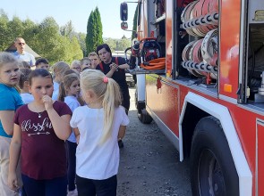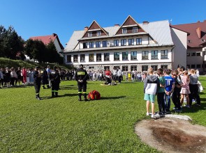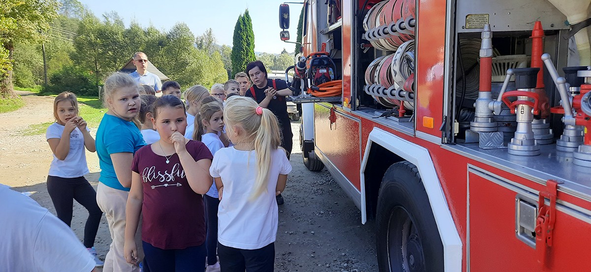 Strażacy zaprezentowali także wyposażenie wozu strażackiego - klasy I-III
